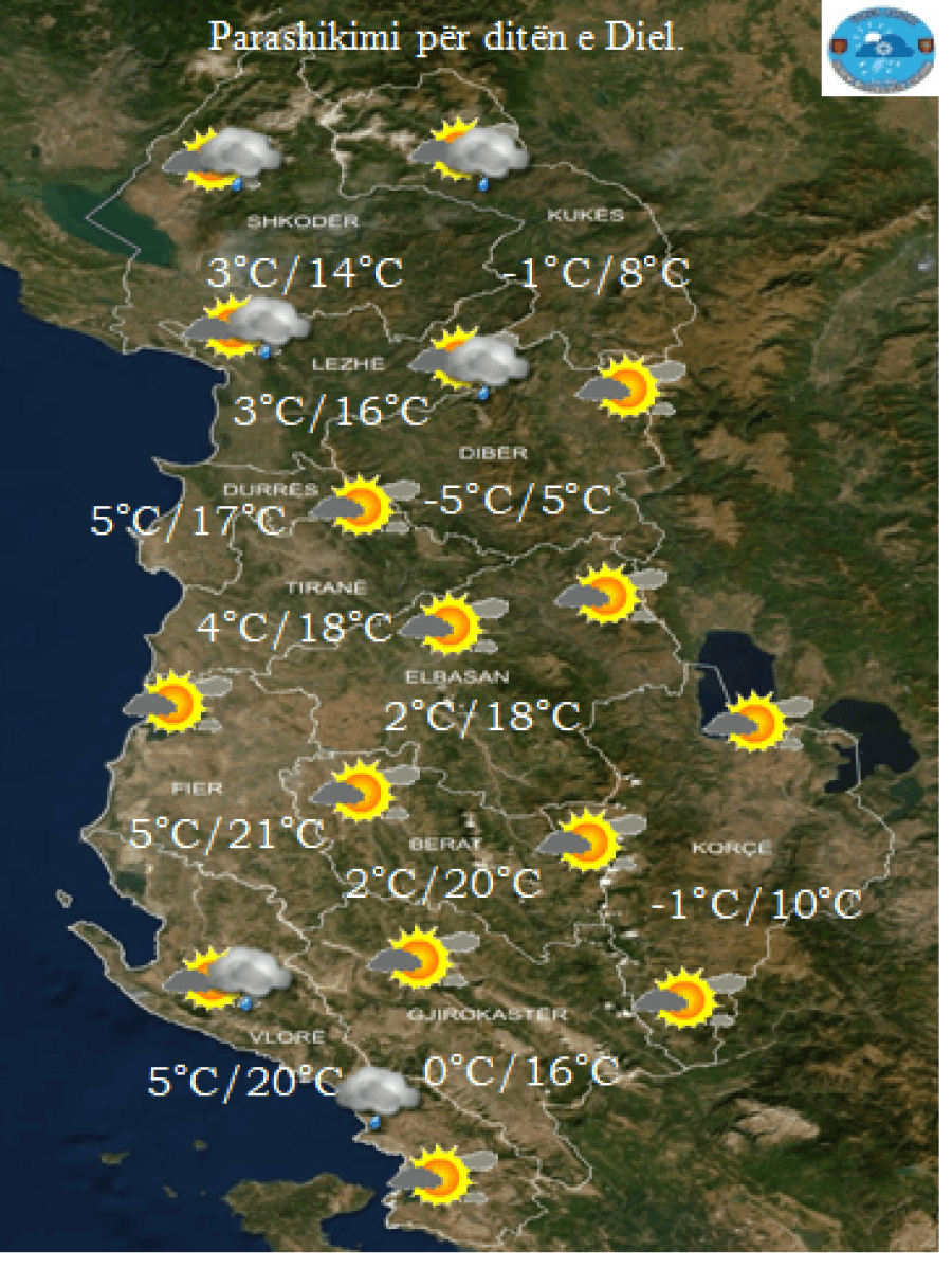 Edhe dita e Diel do të nisë me mot kryesisht të qëndrueshëm, por në mesditë gradualisht nis shtimi i vranësirave mesatare deri të dendura.