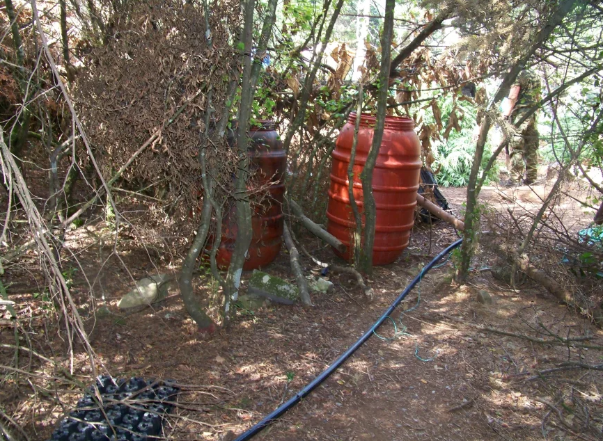 Një vit më parë ata ranë në kontakt me tregtarë të besuar vendas të drogës dhe filluan operacionet. Pasi zgjodhën pesë nivelet në të cilat do të rriteshin fidanët (çdo nivel ishte deri në 20 minuta ecje dhe ngjitje larg nga tjetri), ata filluan me sharrë elektrike me zinxhir kafshësh për të prerë qindra bredha dhe lisa që ndodheshin në vend. Me trungjet e pemëve ata bënë mure për të mos lejuar që dheu të ikte në çdo nivel.