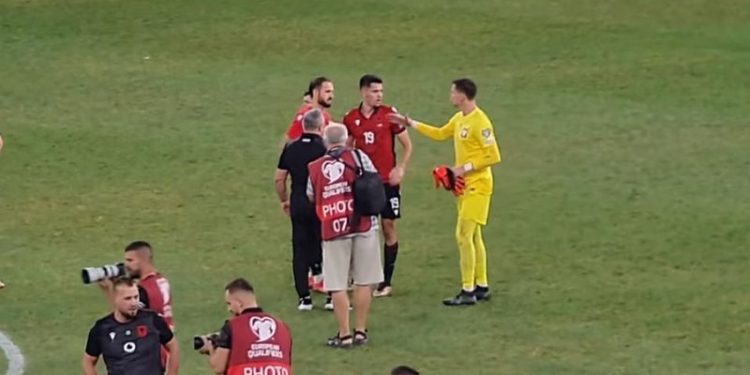 Në fund të pjesës së parë, Shezni doli duke folur me Asanin e njëkohësisht duke e uruar për golin që ka shënuar.