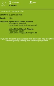 Sipas Qendrës Sizmologjike Europiano-Mesdhetare para disa çastesh në vend janë regjistruar lëkundje me magnitutë 3.1 të shkallës Rihter.